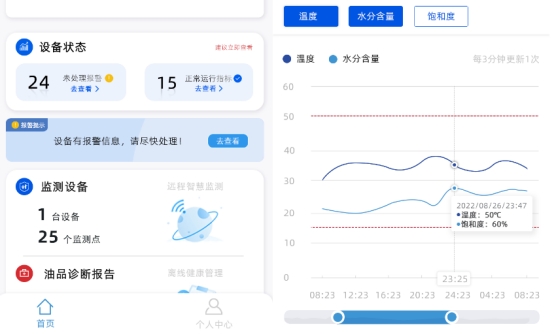■ 對(duì)監(jiān)測(cè)到的數(shù)據(jù)進(jìn)行分析,檢測(cè)油品乳化、粘度超標(biāo)、齒輪異常磨損等故障,并進(jìn)行分級(jí)預(yù)警。